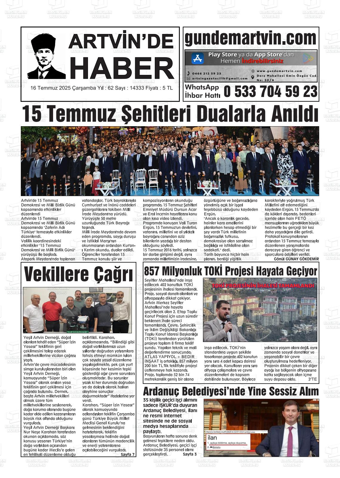 ARTVİN'DE HABER
